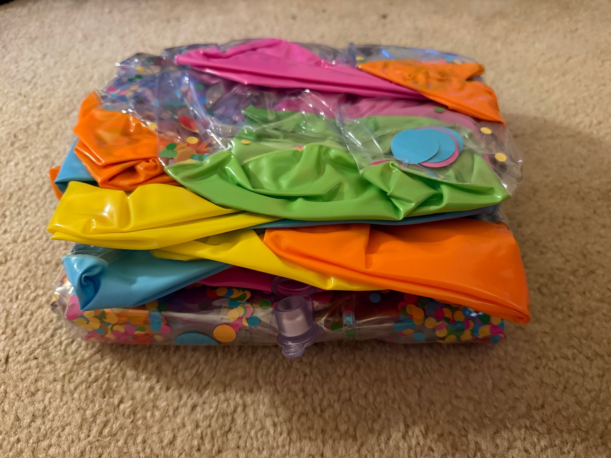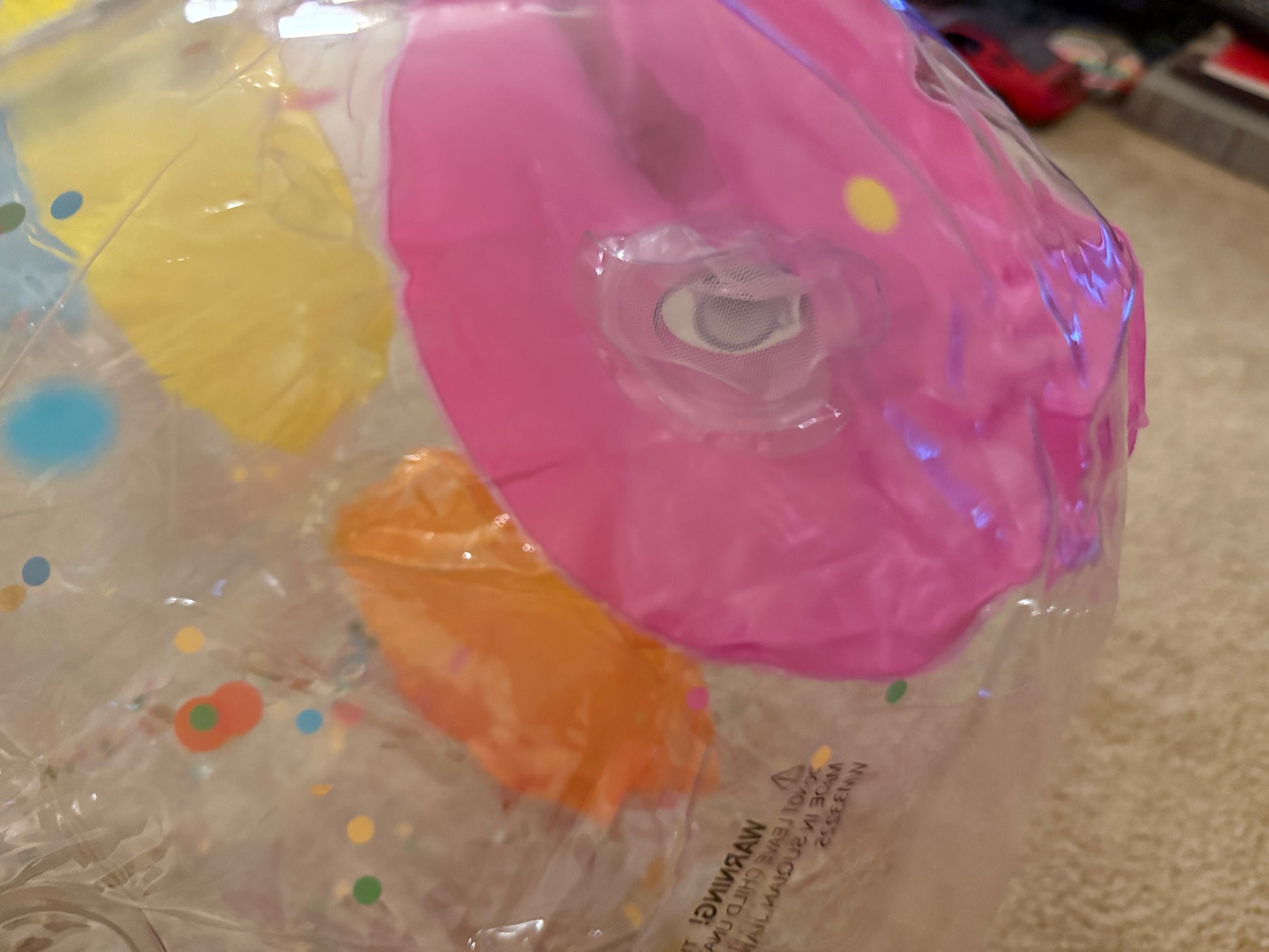 Weiches Material in transparent mit Konfetti und einzigartigem neuen Aufblasschirm auf einem maßgefertigten Spielzeugventil. Luxuriöser Stil wie die Version von Sunnylife, nur kleiner.